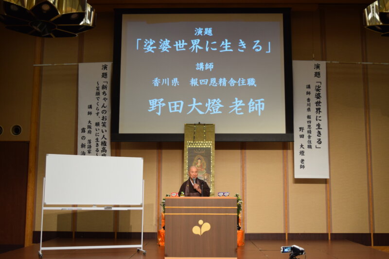 今年度は、香川県より報四恩精舎 前住職の野田大燈老師、また大阪府より上方落語家の露の新治師匠のお二方をお招きし、ご講演を賜りました。また、参加者として檀信徒97名、管内ご寺院42名の方々よりお越し頂きました。