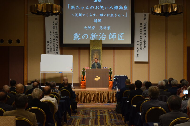 両日ともお二方よりご講演を頂き、野田大燈老師より「娑婆世界に生きる」と題して、また露の新治師匠より人権講座として「新ちゃんのお笑い人権高座~笑顔でくらす、願いに生きる~」と題してお話頂きました。