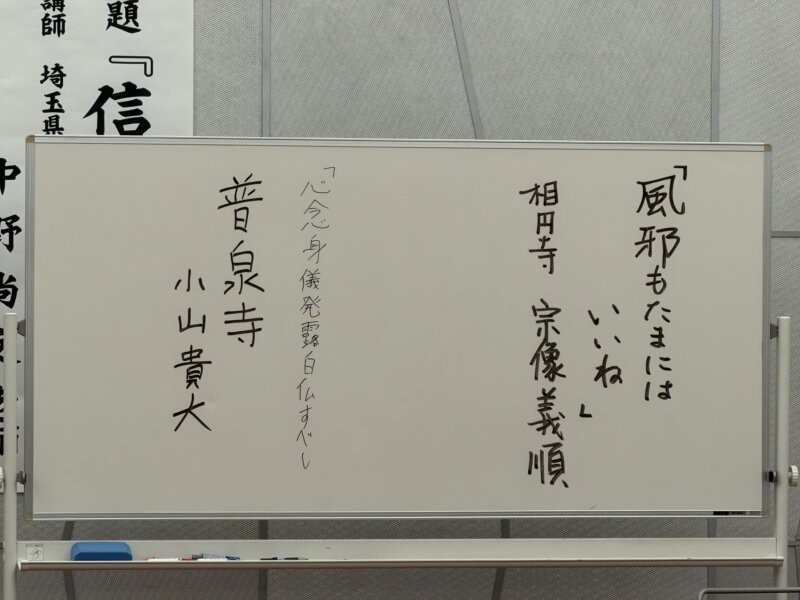この度は、埼玉県正覚寺住職、また特派布教師である中野尚之老師よりお越し頂き、「信心の大事」と題してご講演を頂きました。また、当会会員より2名の方に法話実演をして頂きました。